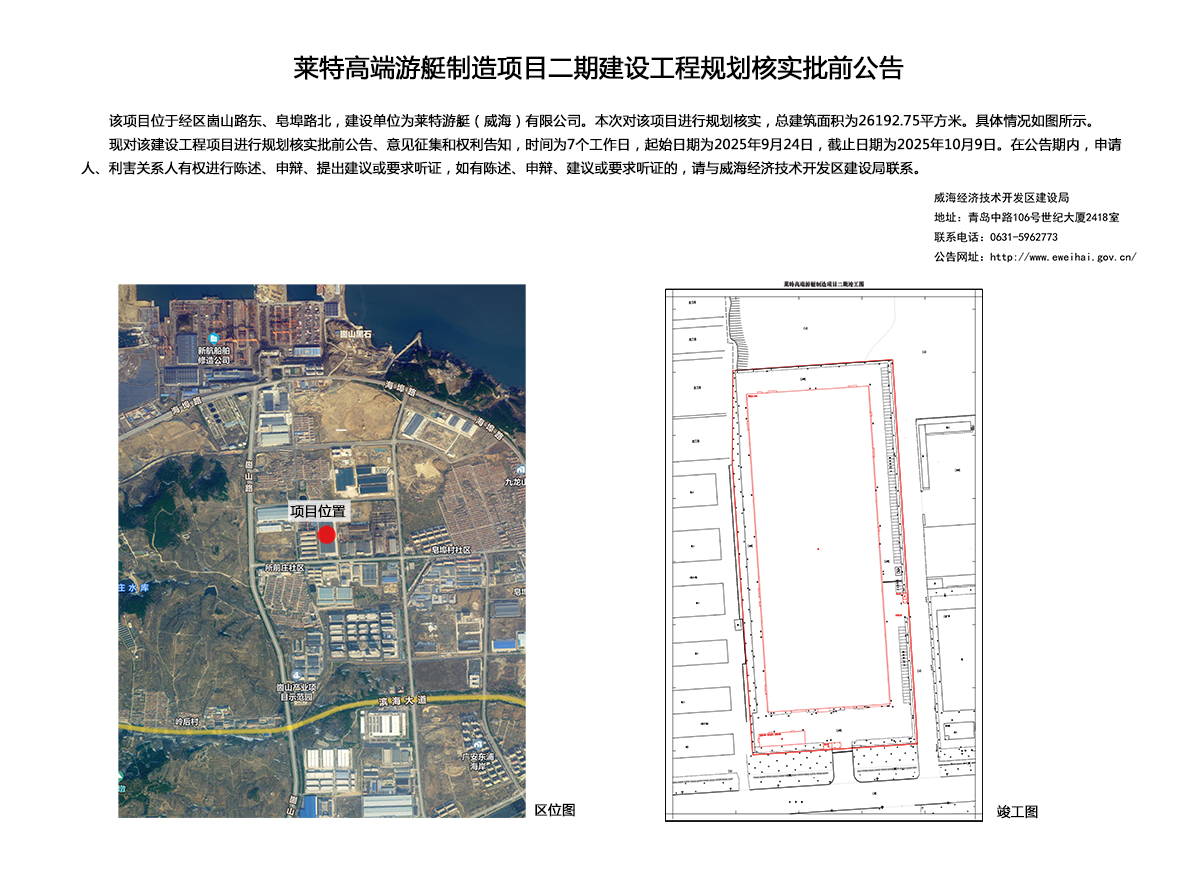 萊特高端游艇制造項目二期建設(shè)工程規(guī)劃核實批前公告
