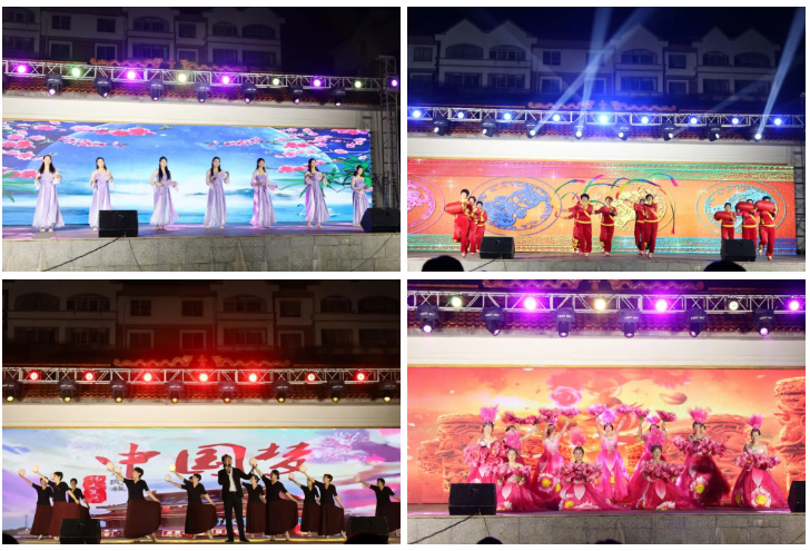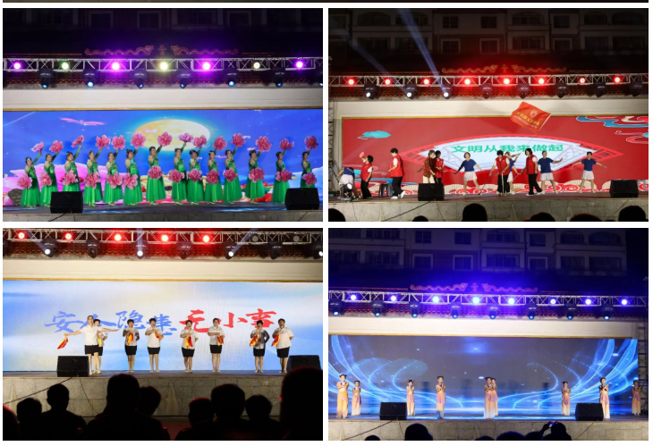 本場晚會由鎮(zhèn)機關、各社區(qū)、村居、合作社攜手威海技師學院、威海市職業(yè)中等專業(yè)學校、泊于鎮(zhèn)中心幼兒園等單位聯(lián)袂獻藝,19個精心編排的節(jié)目輪番登場,精彩紛呈。現(xiàn)場吸引了300余名群眾駐足觀賞,2100余名網(wǎng)友通過網(wǎng)絡直播在線觀看。泊于鎮(zhèn)班子成員,機關干部,各村、社區(qū)、合作社主要負責人和“兩委”干部到場觀看演出。